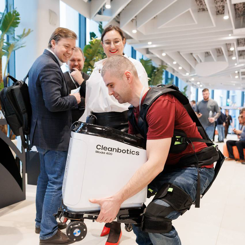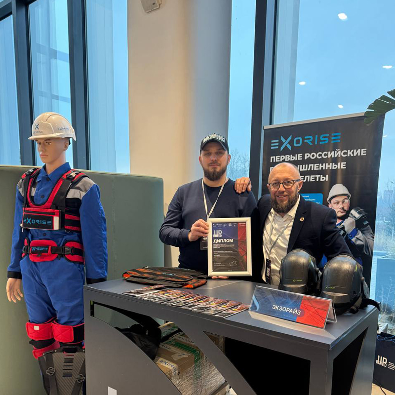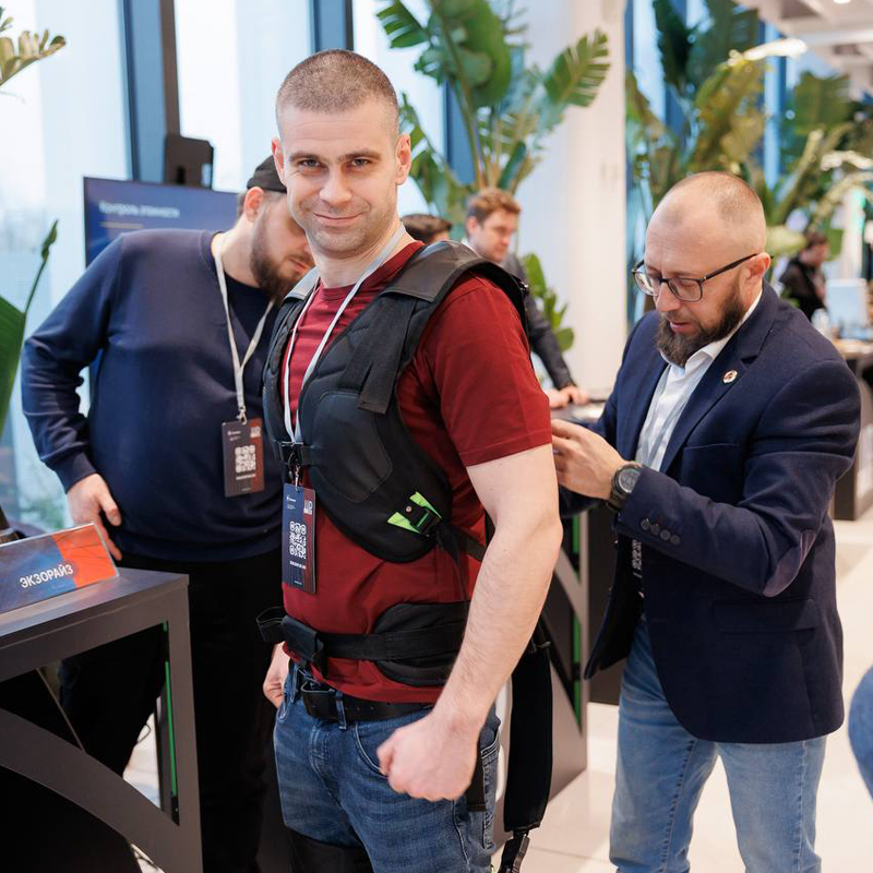 Особый интерес на демонстрационном дне вызвали разработки в области повышения эффективности труда. Среди них были представлены экзоскелеты компании «Экзорайз», призванные снизить физическую нагрузку на рабочих, минимизировать риск травм и повысить производительность на строительных площадках.